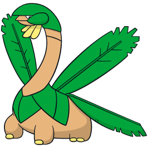 The bunches of fruit around Tropius’s neck are very popular with children. This Pokémon loves fruit, and eats it continuously. Apparently, its love for fruit resulted in its own outgrowth of fruit.